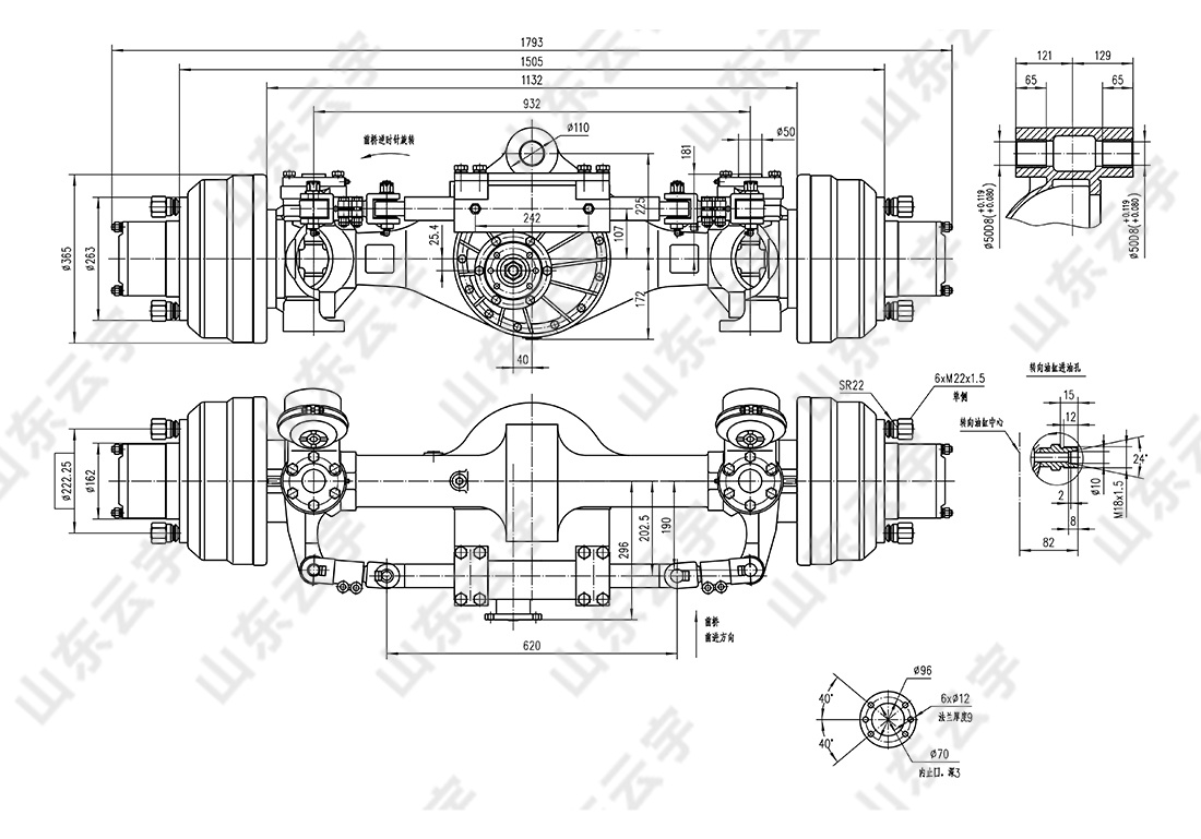 ● 采用整体式铸钢桥壳,刚性好。